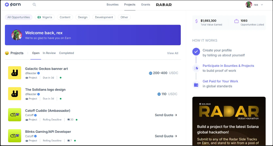 This structure allows freelancers to showcase their expertise while contributing to meaningfully within the Solana ecosystem.